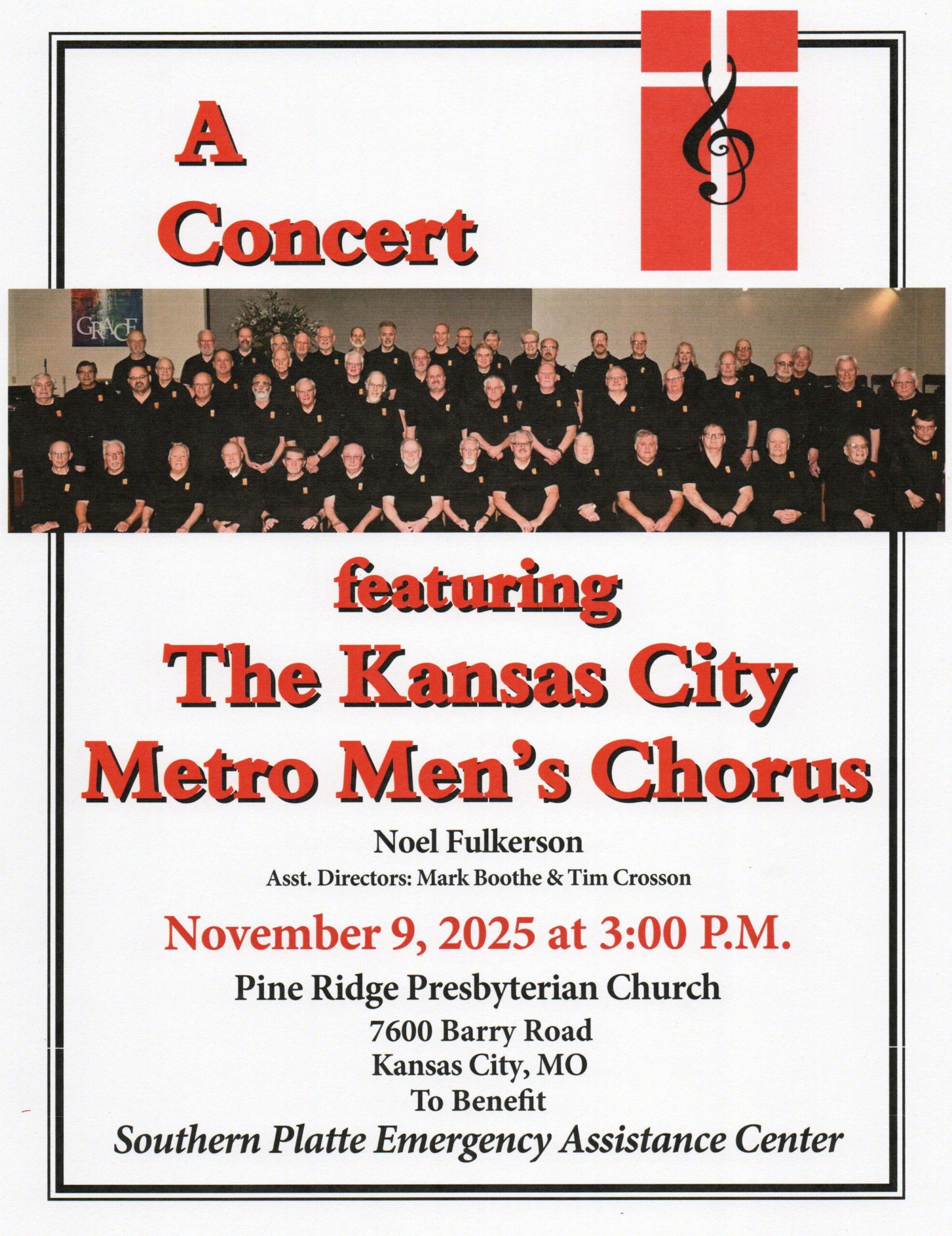 The Kansas City Metro Men’s Chorus will be performing at Pine Ridge Presbyterian Church on Sunday, November 9 at 3 p.m.